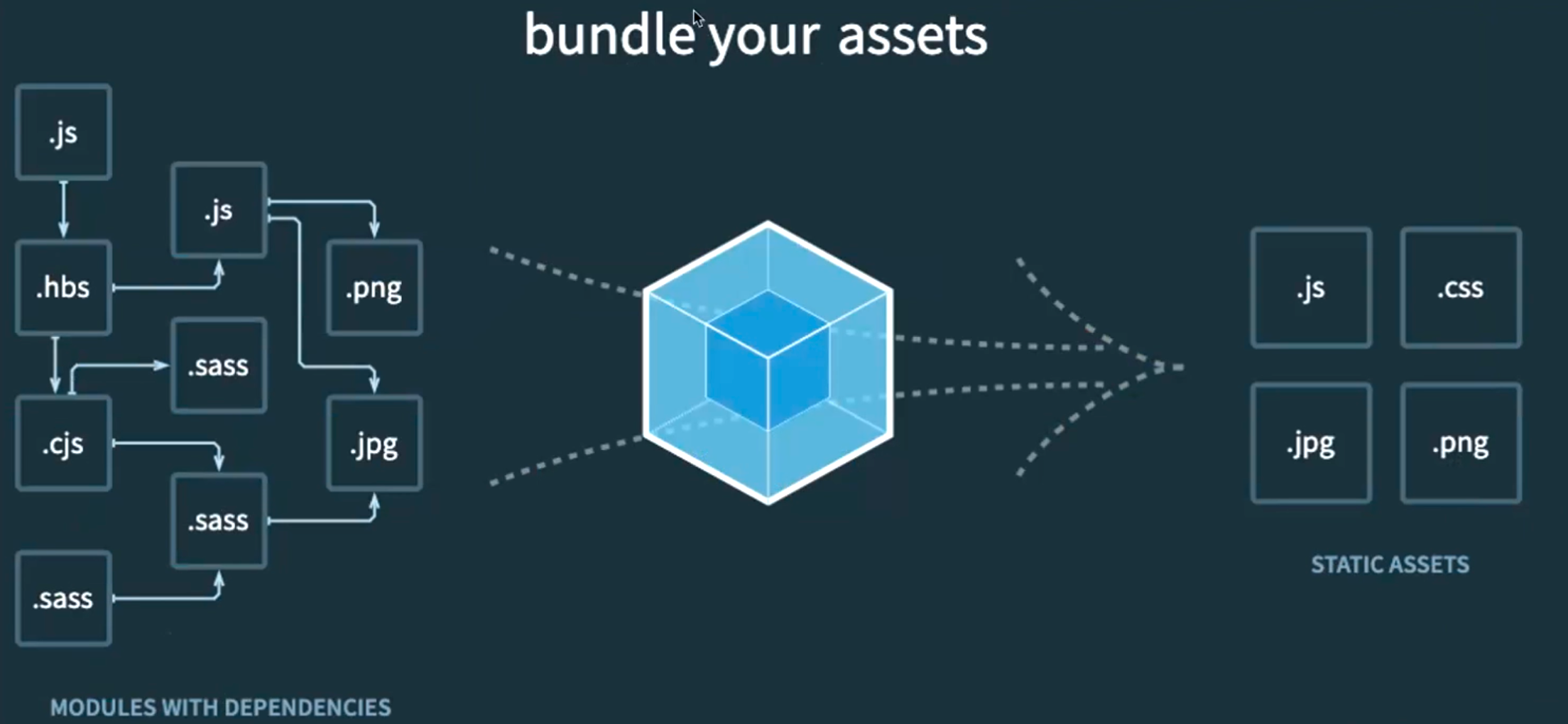 - webpack is a static module bundler for modern JavaScript applications.