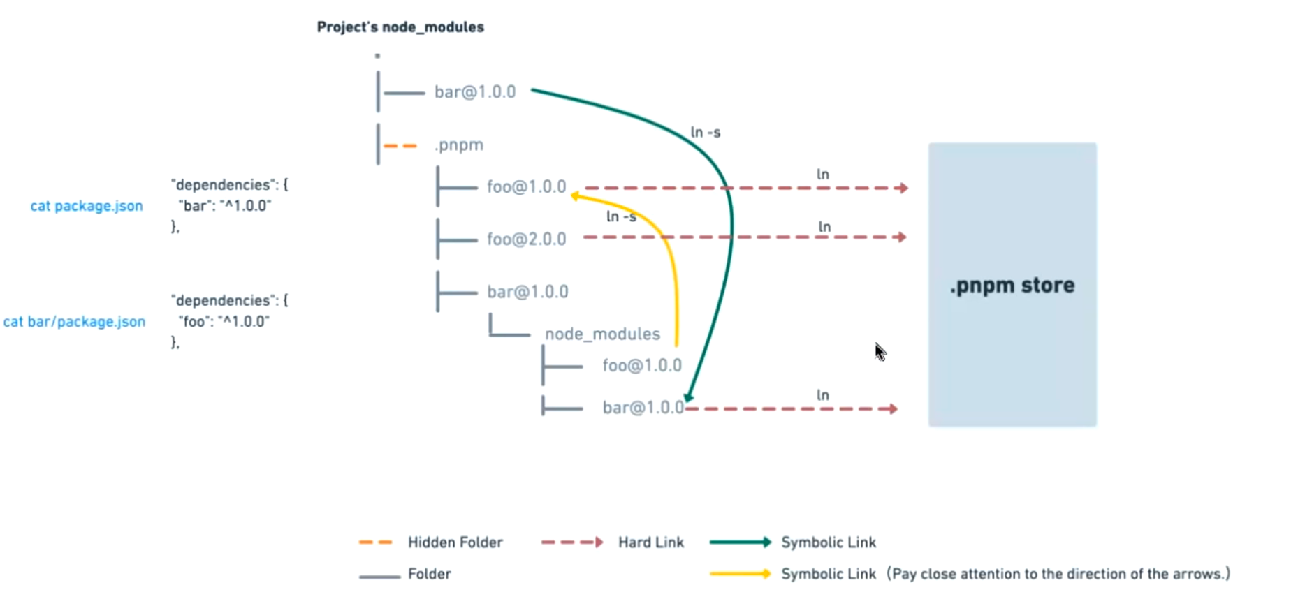 • 当使用npm或Yarn时,如果你有100个项目,并且所有项目都有一个相同的依赖包,那么,你在硬盘上就需要保存100份该相同依赖包的副本